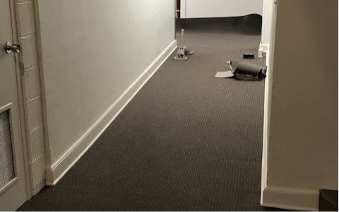 We are continuing with flooring this week. Carpet is down in the main fellowship hall space, and we are finishing up carpet through the hallways leading to the lower level Education Wing. Light fixtures have arrived, and lighting will be installed through September 22. We are still on target and on budget for completion by September 30.