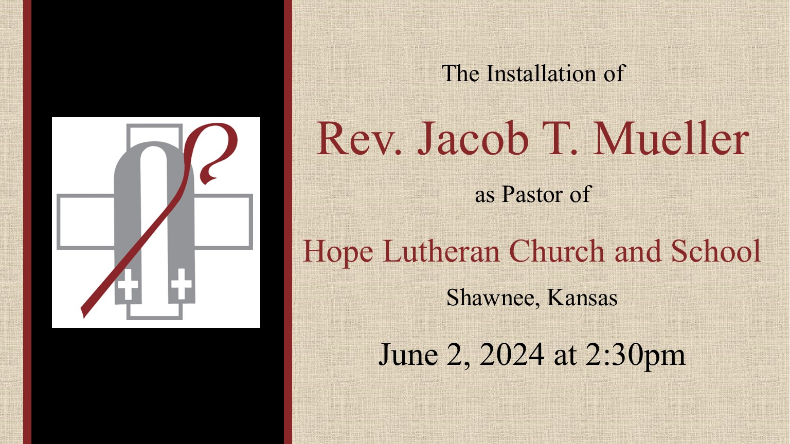 as Pastor of Hope Lutheran Church and School in Shawnee, Kansas,