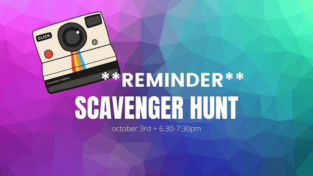 Youth Group, join us THIS Sunday, October 3 from 6:30-7:30pm as we see which team will earn the most points in 45 minutes during our photo scavenger hunt. We will meet at the lower-level parking lot of the Shawnee Campus. It is going to be a blast!