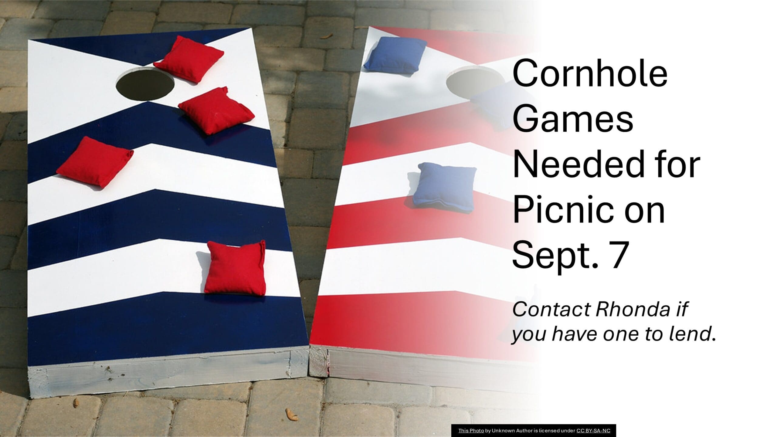 Wanted: Cornhole Games by Gretchen | Aug 20, 2025 | Children, eNews, Family Life Ministry We are looking for two cornhole games to use for the congregational picnic on September 7 at 4pm. If you have one we could use please contact Rhonda Synovec, rhonda@tlcms.org. Contact Rhonda